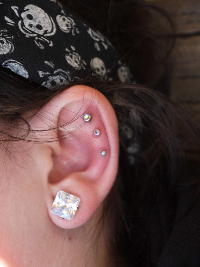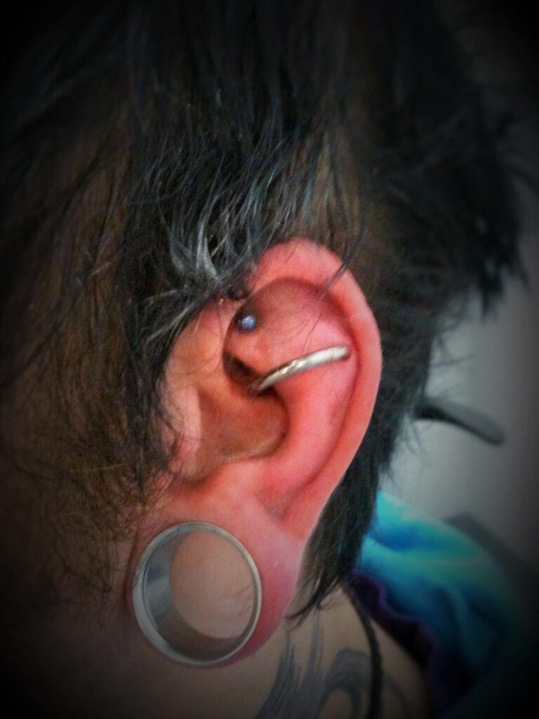This is placed on the scaphoid of the ear which is the flat area between the helix and forward helix. It can be done anywhere in this area, a good piercer will place it to avoid hitting any larger veins but there is nothing terrible to be hit in this area.