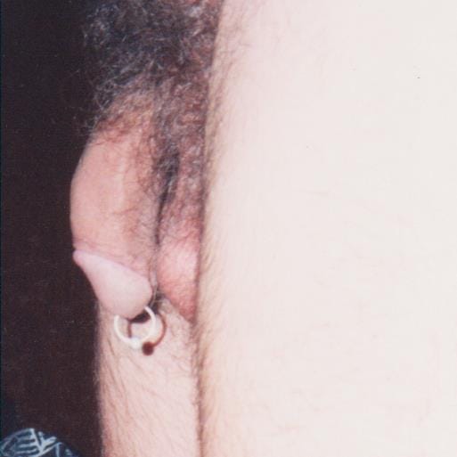It is a common story about Prince Albert getting this piercing as a dress ring to hold his penis to his leg to avoid a bulge in the tight pants of the era. Due to its interesting history this piercing is the most commonly referenced and talked about piercing. However, for many years the frenum was the most common male genital piercing. While men knew of the Prince Albert they were more apprehensive about getting it as it looks invasive and deeper than other piercings. This is deceptive as the piercing itself is through a thin layer of soft tissue between the urethra and the underside of the penis. It is less painful than most piercings and heals faster making it an ideal first piercing for the adventurous male. This piercing took off in the 1970’s and 1980’s in the B & D and S & M scene and with the lack of jewellery being available it was not uncommon for men to wear padlocks in this piercing. By the late 1980’s the fixed bead ring took off with gold rings with the ball attached on one side and so this became more of a fashion ring and as more males got this a 1.6mm (14ga) ring was a common PA adornment so as not to scare the girls. With the use of padlocks it was discovered that this piercing stretched easily and by the 1990’s with surgical ball closure rings and circular barbells being easier to purchase in increasingly larger gauges this became the piercing to stretch. By the late 1990’s to roughly 2010 it was often done in larger gauges and it often stretched with up to 10mm circular Barbells. Now in 2019 we have seen a swing away from the Prince Albert again and towards the Frenum possibly because with the increase number of piercers who don’t know how to do the Prince Albert the Frenum is an easier piercing to do so the untrained industry has swayed people into thinking this piercing is more painful because it is a little more difficult to do.