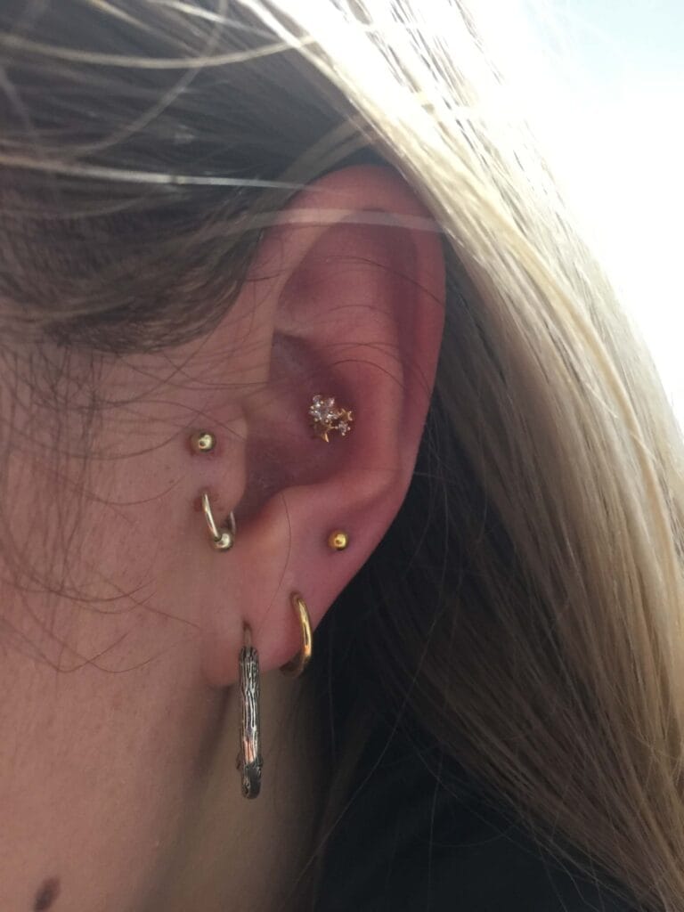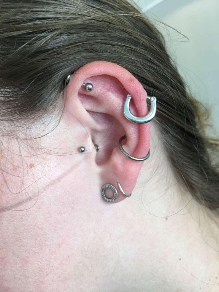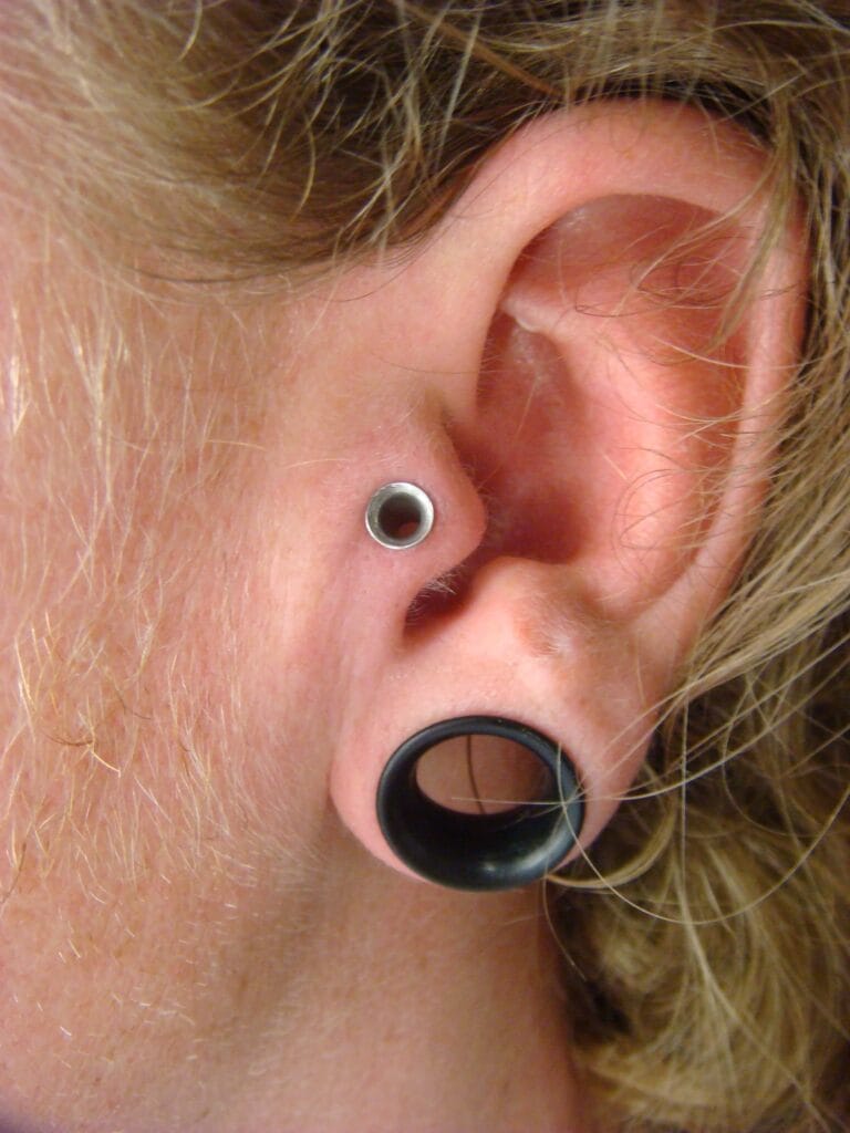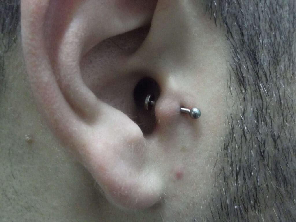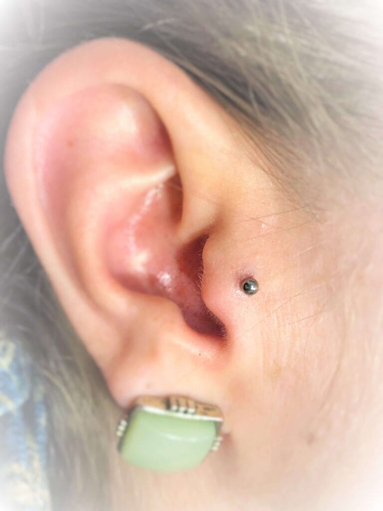 This is a popular piercing done in The small lump of cartilage that sits against the face in the middle of the ear. Can be done with a Ring, Labret or Circular Bar
